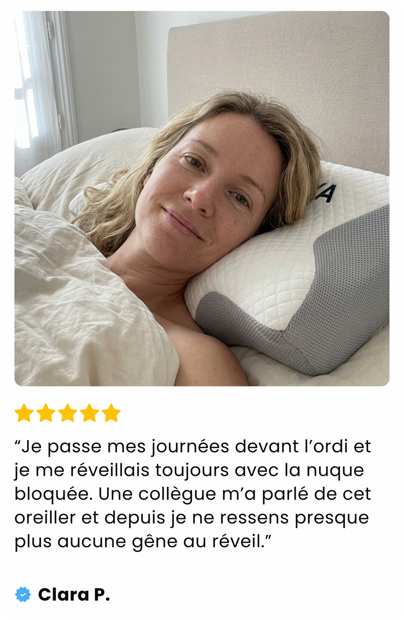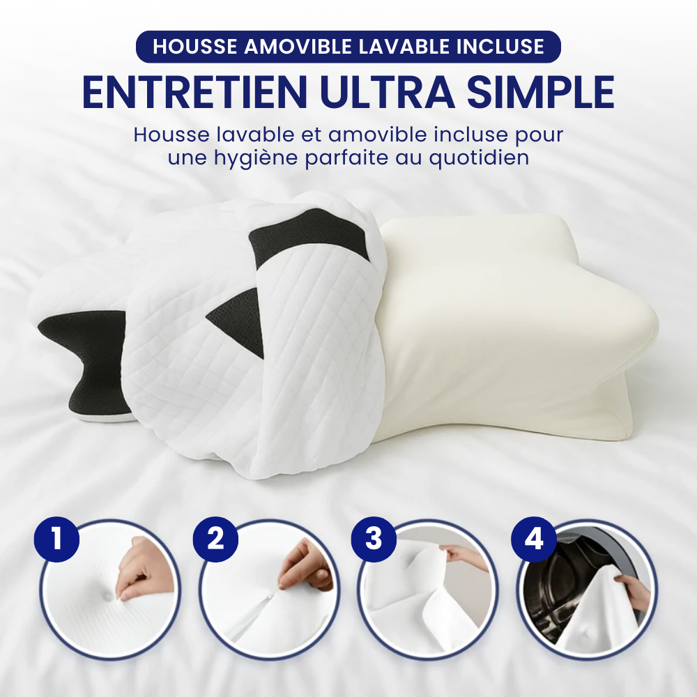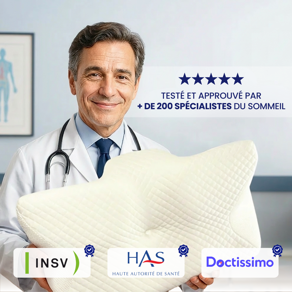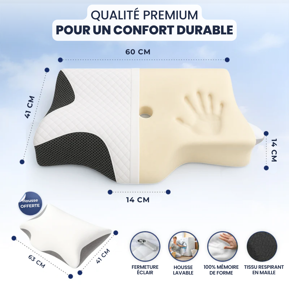 L’oreiller ergonomique pensé pour aligner votre corps, soulager vos douleurs et vous offrir enfin un vrai sommeil réparateur.
